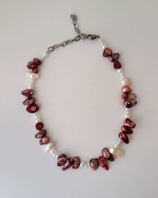 Collar hecho con perlas nacaradas y terminaciones en acero quirúrgico.